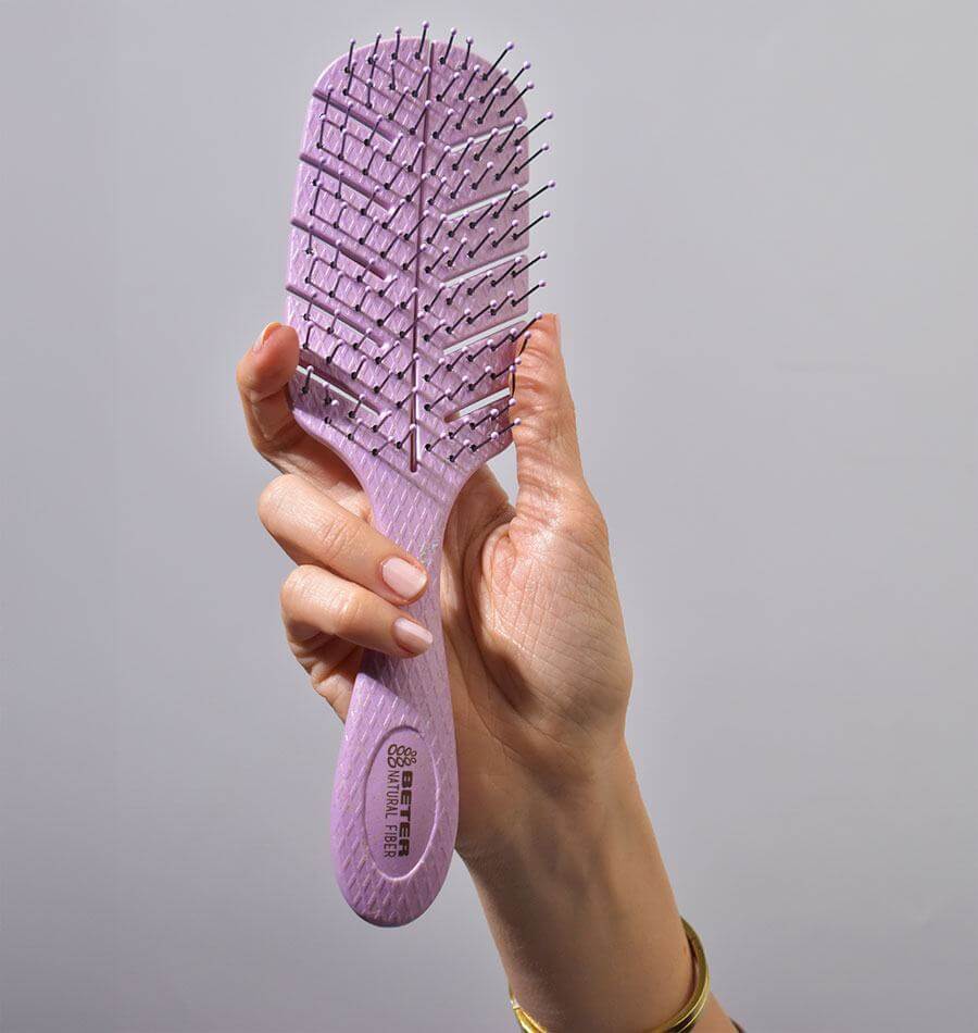 Su diseño ligero y ergonómico permite un manejo cómodo, convirtiéndolo en una herramienta práctica para el peinado diario. Además, su fabricación con fibras naturales forma parte del compromiso de la marca con opciones más respetuosas con el entorno.